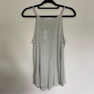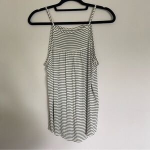 This chic tank top from Loft features a timeless black and white stripe pattern, offering a relaxed and flowy fit. The sleeveless design and high neckline provide comfort and style, while the lightweight fabric ensures a breezy feel. Perfect for layering or wearing solo, this top is a versatile wardrobe staple.