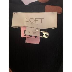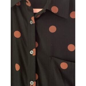 Loft Black with Tan Polka Dots Long Sleeve Collared Blouse Size Small