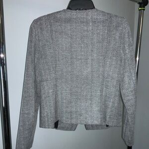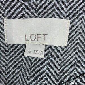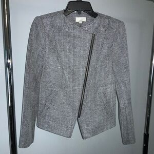 Loft Blazer Gray Herringbone cropped jacket Sz XS Long Sleeve Zip Front lined