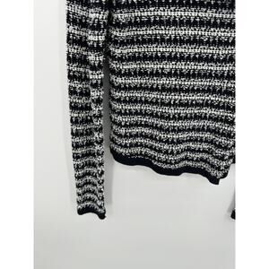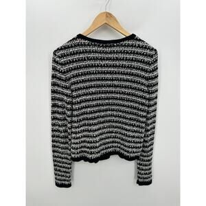 Loft Blazer Women Medium Black White Striped Tweed Full Zip Jacket Knit Career