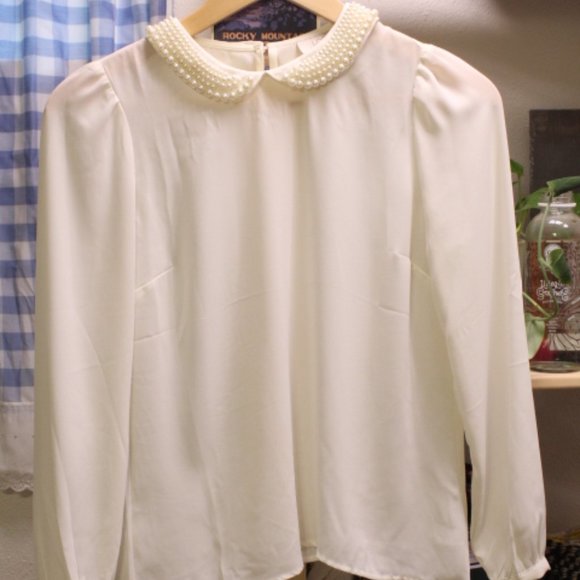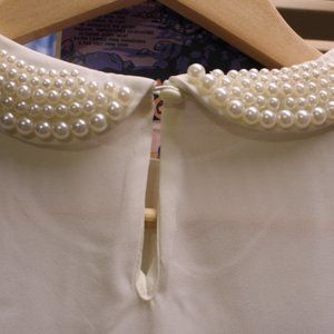 So cute and slightly sheer. There are a few buttons that were missing when I bought the blouse but the rest of the buttons are secure. There is a keyhole opening in the back. Besides the buttons, this blouse is in like-new condition.