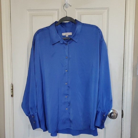 Blue. Loft blouse. XL. Only worn once. Great condition. There is a spot close to last button. Shown in pictures.