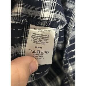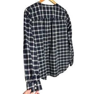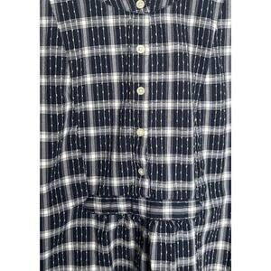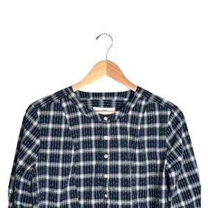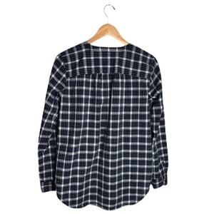 Loft Blouse Navy Plaid Long Sleeves Size Medium Flowing Blue White Cotton Winter