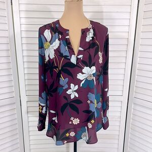 Loft Blouse Size Medium Floral Long Sleeve Lightweight