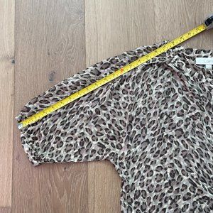 Loft Blouse Women Small Petite Brown Tan Animal Print Ann Taylor Leopard Shirt