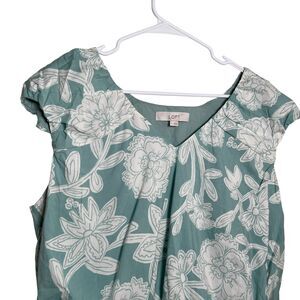 Loft Blouse Women's Large V-Neck Cap Sleeve Bubble Floral Boho Shirt Top
