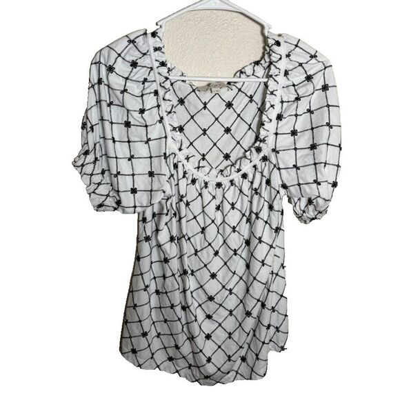 Loft Blouse Women's Medium Eyelet Puff Sleeve Square Neck Boho Casual Top