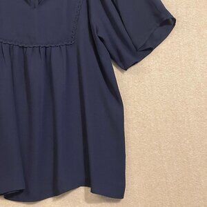 Loft Blouse Women's Small Dark Blue Flared Sleeves