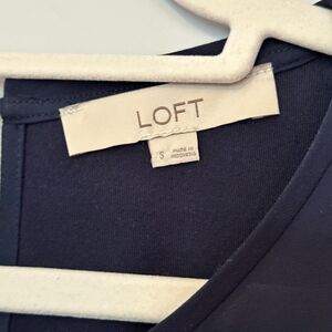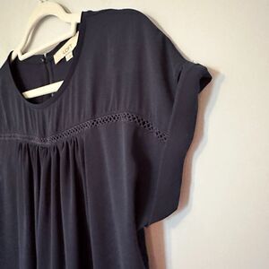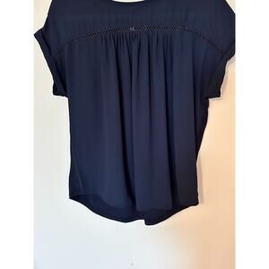 Loft Blouse Womens Small Navy Blue Cutout Neckline Short Sleeve Mixed Media Top