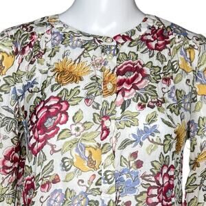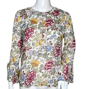 Loft Blouse Womens Small Petite White Multi Floral Cottagecore Boho Bohemain