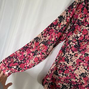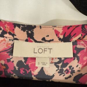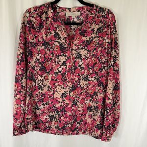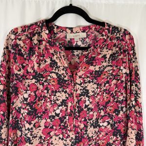 Loft Blouse Women's Small Pink Floral Long Sleeve Lightweight 1/2 Button