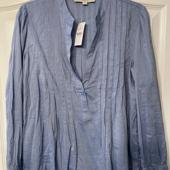 This LOFT Blouse is size Small. It was made in Indonesia. Beautiful, brand new, and has the tag on it!
