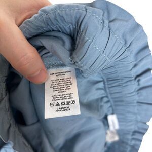 Approximate measurements laying flat: waist 15.75”, rise 11”, leg opening 13.5”, and inseam 3.75”