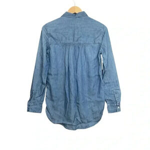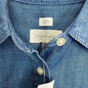 Loft Blue Chambray Linen Shirt Button Front Size XXS