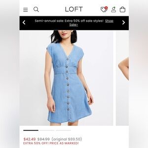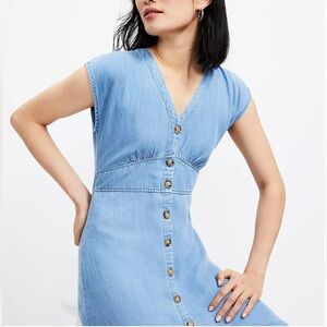 This stylish blue denim dress from Loft features a flattering V-neck and button-down front. Perfect for casual outings, it offers both comfort and style.