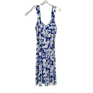 Loft Blue Floral Maxi Dress Resort Wear Tropical Sz 10 Vacation
