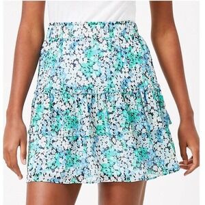 Loft Blue Floral Ruffle Tiered Mini Skirt Size Medium
