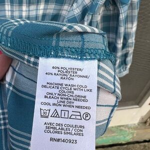 Chic blue plaid blouse with ruffle details. Perfect for casual outings. Size XL in excellent condition. App 22 in ↔️ App 24 in ↕️
