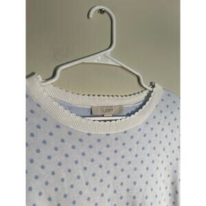 Loft Blue Polka Dot Short Puff Sleeve Cotton Sweater Size Large
