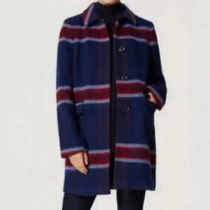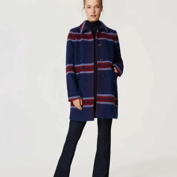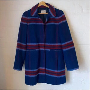 Loft Blue Red Plaid Stripe Wool Coat X-Small