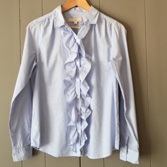 Loft Blue Ruffle Button-down Small