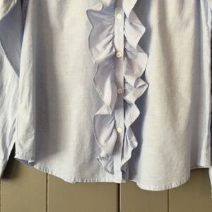 Ruffle Front Oxford Blue Button Down.