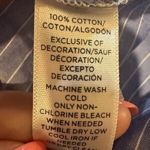 Stylish blue striped blouse featuring vibrant floral embroidery. Perfect for casual or formal occasions. EUC