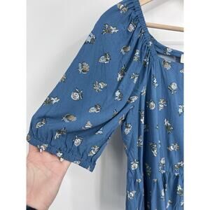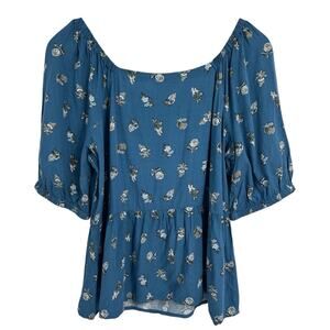 Loft Blue Thistle Print Peplum Style Short Sleeve Top Medium
