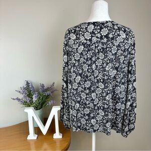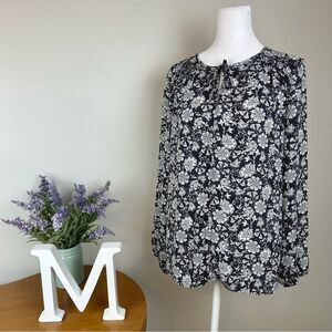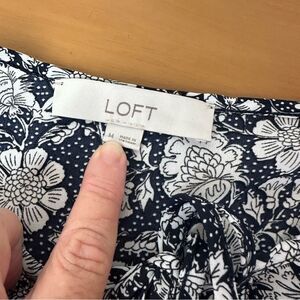 Loft Blue & White Floral Ruffle Tie Neck Blouse - size Medium - EUC