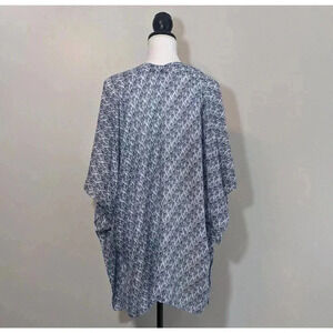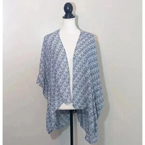 Loft Blue White Geometric Print Open Front Kimono Coverup Beach Swim O/S