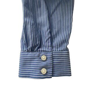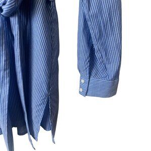 Loft Blue White Stripe Back Zip Side Vents Front Tie Tunic Top Size 12