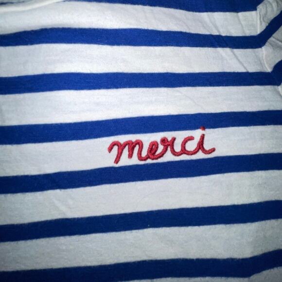 Loft Blue White Striped Long Sleeve Shirt Embroider Merci Harbor Nautical Paris