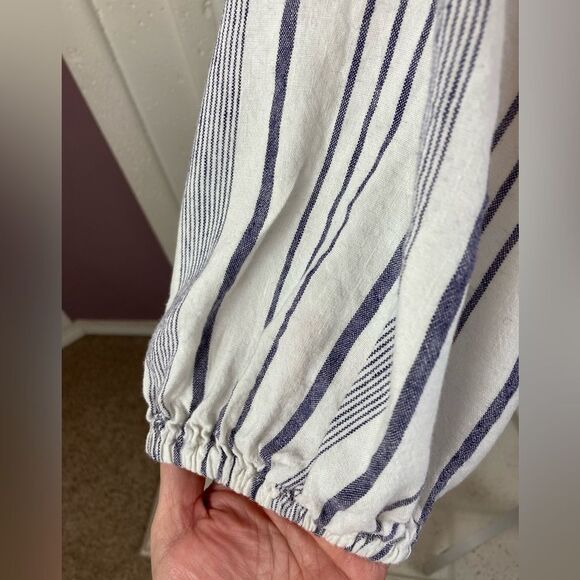 Loft Blue and white airy linen blend striped Button-Up tunic w/ side vents