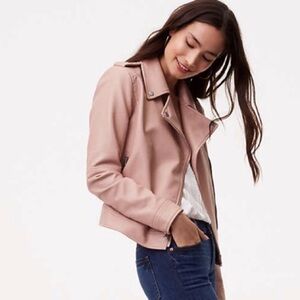 Loft Blush pink Vegan Leather Moto Jacket. Size 6. Excellent condition. Fully lined. I bought two sizes and don’t need both. So chic! Worn twice. Feels like real leather! Zipper closure and zipper details at both cuffs.