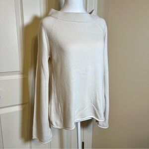 Loft Boatneck Sweater Cream Rolled Hem Rabbit Hair Blend Size Medium
