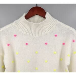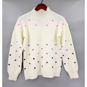 Loft Bobble Sweater Womens XXS Cream Gradient Polka Dot Knit Mock Neck 80s Retro