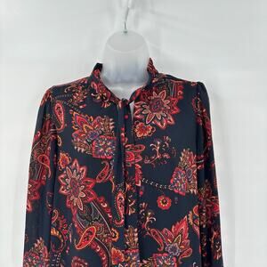 Loft Boho Dress Small Paisley Print Tie Neck Fall Long Sleeve Mini Romantic