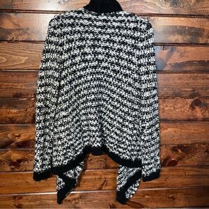 Loft Bouchle Knit Black and White Open Front Waterfall Cardigan Size Medium