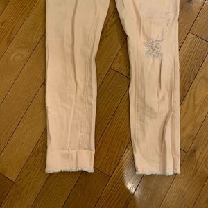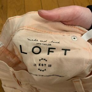 Loft boyfriend jeans in icy peach. Button fly front raw edge bottom and distressed. Lightly worn size 2 c11