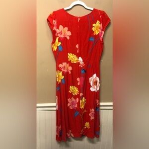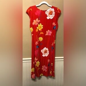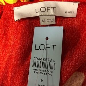Loft Bright Colored Red Floral Rayon Sleeveless Dress Size 6 Petite NWT