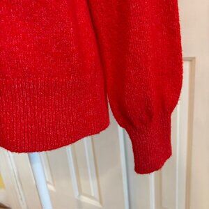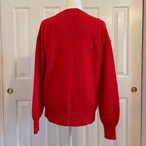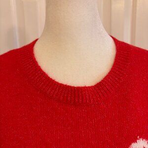 Loft Bright Red Crewneck Sweater with White Heart Design Women's Size Small
