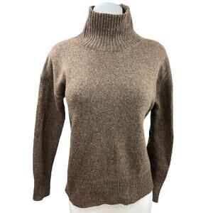 Loft Brown Modern Mock Neck Wool Blend Knit Relaxed Pullover Sweater Top Size XS