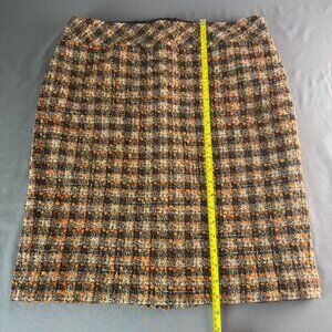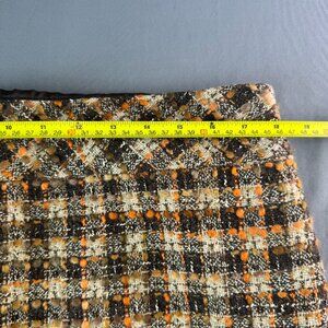 Loft Brown Tan Cream & Orange Plaid Midi Skirt Zip Lined Textured Trendy Wool 14