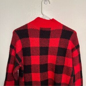 Loft Buffalo Plaid Mock Neck Sweater Red Black MP