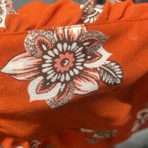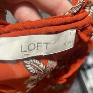 Loft Burnt Orange Floral Ruffle Tie Neck Blouse petite small