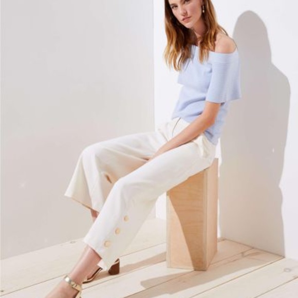 Loft Button Cuff Wide Leg Pants Size 4. Front zip with button closure. Front slash pockets. Back welt pockets. Very flattering. Never worn.