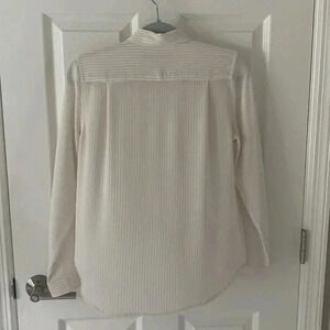 Loft Button Down Blouse- cream with silver metallic pinstripes size Small Petite