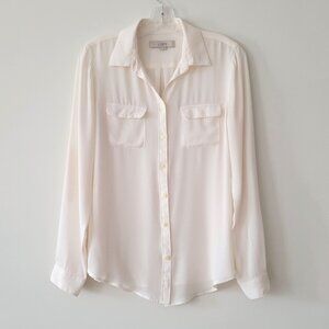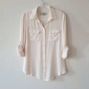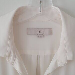Loft Button Down Cream Off-White Pocket Adjustable Sleeve Blouse Shirt - Small