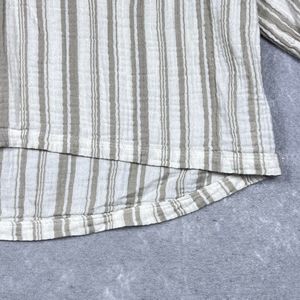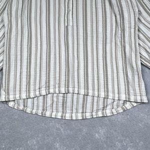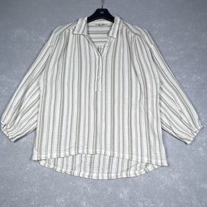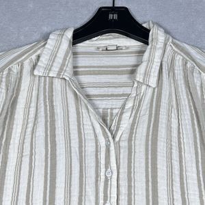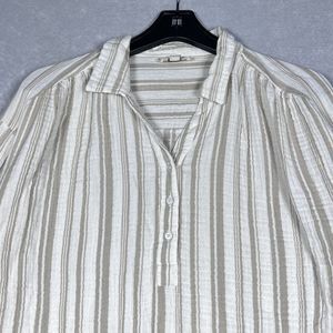 Loft Button Women’s Size Small Beige White Striped Long-Sleeved Shirt Pullover
