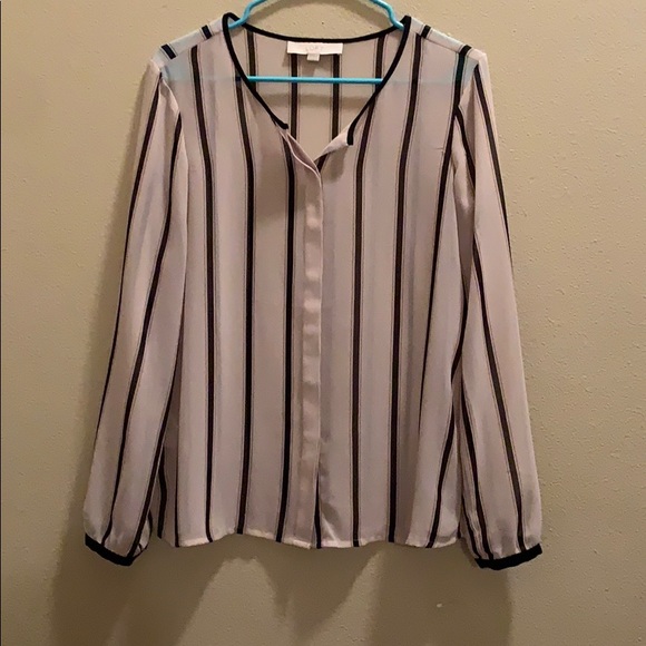 Loft. Small. Black striped sheer. Button down. 100% polyester.